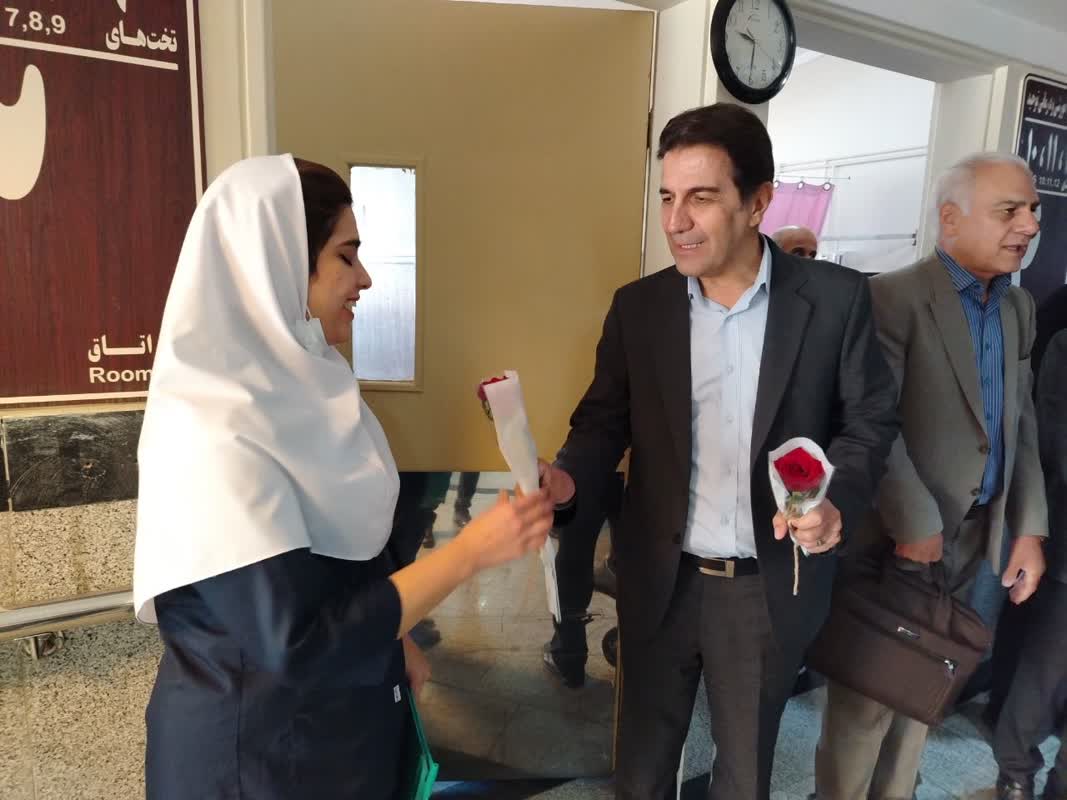 در این مراسم که رئیس بیمارستان، دکتر محمد مرادی به همراه تیم مدیریتی و اعضای هیئت رئیسه حاضر، از نزدیک با پرستاران بخشهای مختلف این بیمارستان دیدار کردند و از تکتک زحمات و مهرافزونیهای پرستاران این مرکز تقدیر و تشکر کردند.