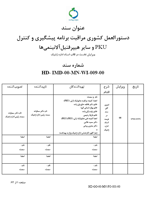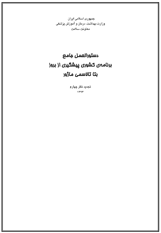 دستورالعملهای اجرای برنامههای مربوط به ژنتیک اجتماعی(پیشگیری از بروز بتا تالاسمی ماژور، PKU،...) |